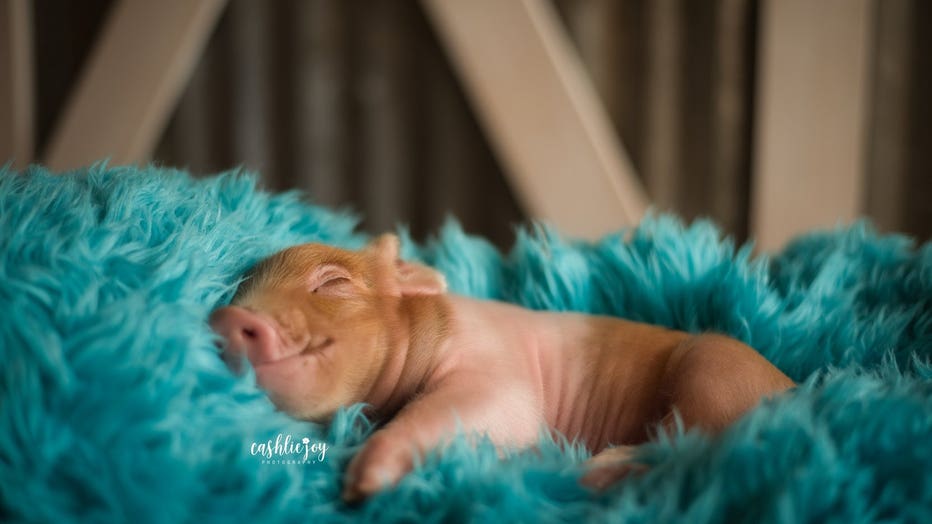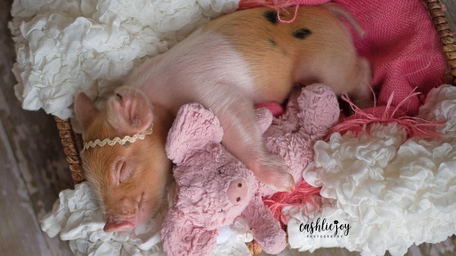 Oklahoma-based photographer Cashlie White recently photographed a sweet little newborn piglet named Dynamite.