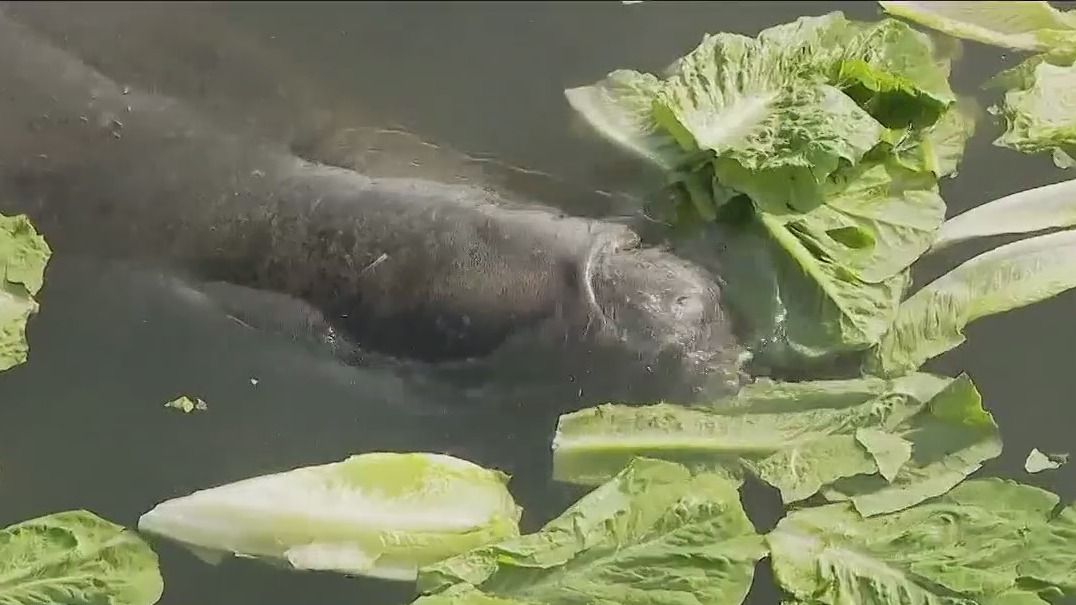 The Florida Wildlife Commission fed manatees lettuce since the sea grass they normally eat has been getting killed by harmful algae blooms.