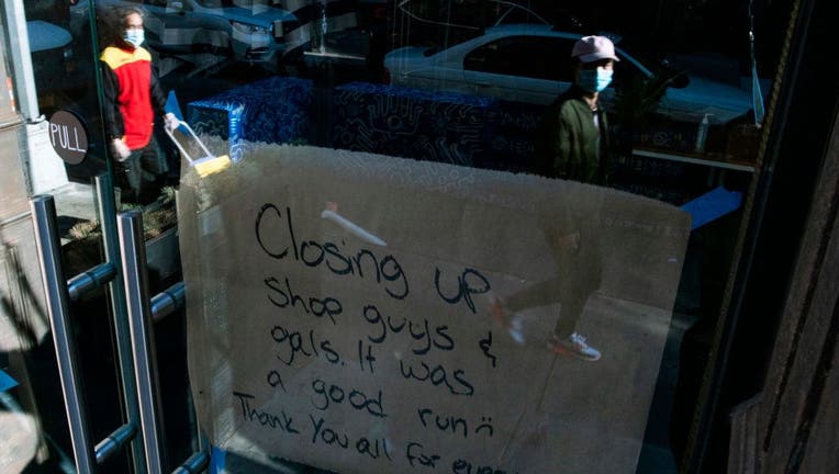 People walk by a closed restaurant as the global outbreak of the coronavirus disease (COVID-19) continues increase on November 23, 2020 in New York. (Photo by Eduardo MunozAlvarez/VIEWpress/Corbis via Getty Images)