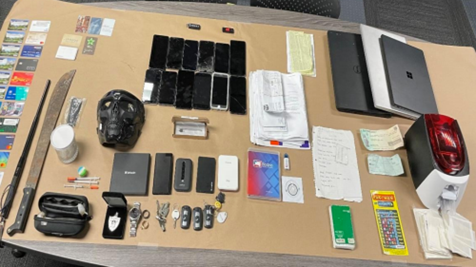 During the investigation, officers also recovered a stolen motorcycle, two handguns -- one of which was stolen in residential burglary -- a shotgun, AR-15 assault rifle parts, ammunition, illegal narcotics and stolen computers. Officers also found a device used to create fictitious credit cards.