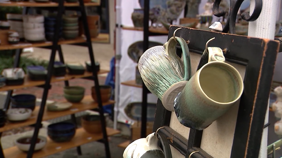 Artist Magali Grove, who said she's had a booth at the festival for over 20 years, showed her ornately painted gourds. She makes artwork from gourds she sculpts and decorates with a wood-burning technique. '
