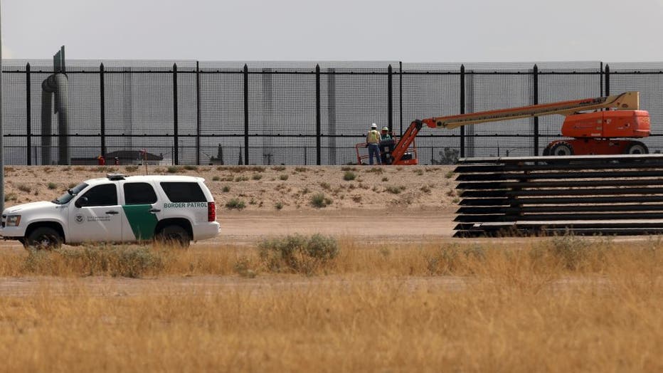 A Border Patrol unit drives by the construction site of a new section of the border wall between the US city of El Paso, Texas and Ciudad Juarez, Chihuahua state, Mexico on August 17, 2020 (Photo by HERIKA MARTINEZ/AFP via Getty Images)