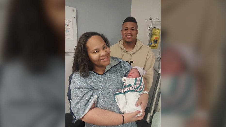 Amiri Kingston Smith was born at 12:23 a.m. on Jan. 1, 2026 at AdventHealth Orlando to parents Tara Williams and Dontray Smith. (Courtesy: AdventHealth)