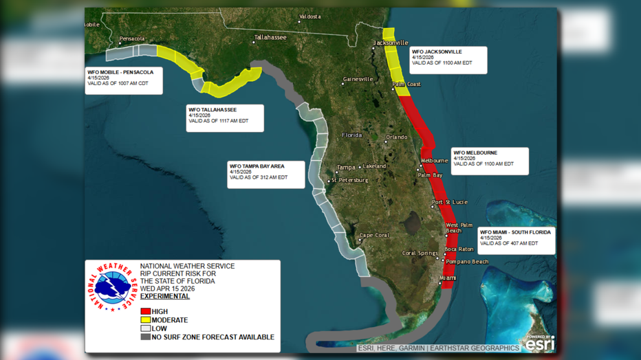 The National Weather Service reports a high rip current risk for April 15, 2026. (Source: National Weather Service)