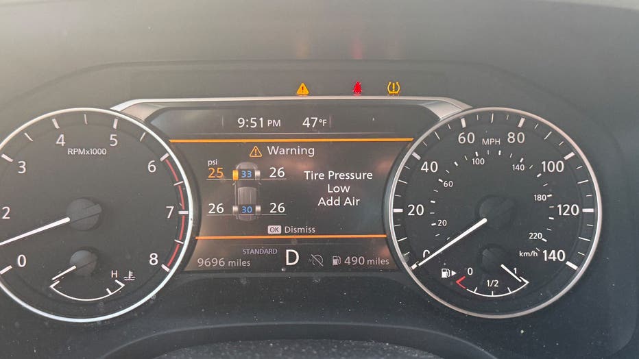A car indicates low tire pressure as Orlando dropped to record lows on Nov. 11.