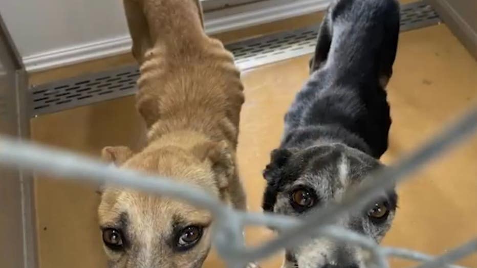"She's at least got some meat left to her," an officer said about the other dog. "It's still not OK."