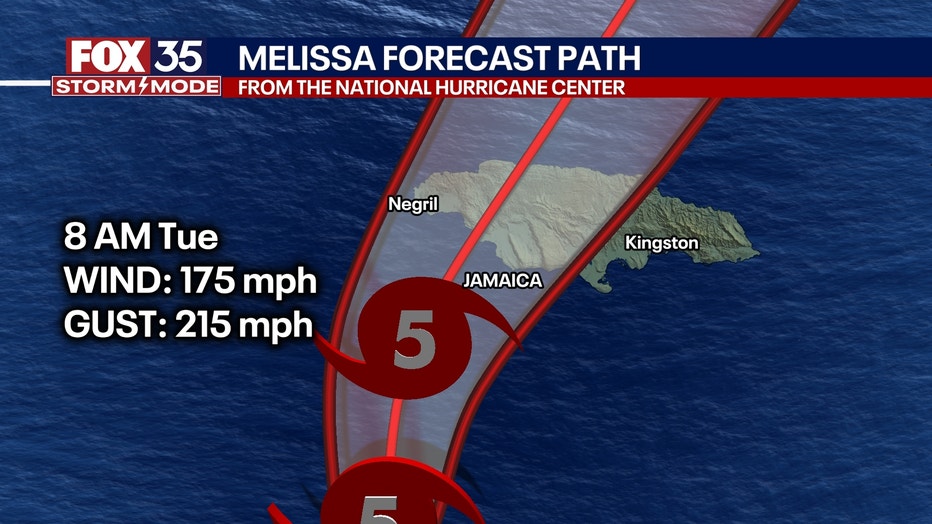 ORLANDO, Fla. - Hurricane Melissa is barreling toward Jamaica and is expected to make landfall as a Category 5 hurricane.