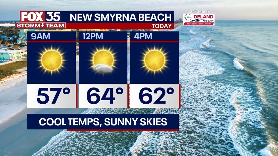 TONIGHT: Mostly clear skies and chilly temps return tonight. Upper 30s will be possible over the far Northern Counties, mid-40s closer to Orlando Metro. Breezes will ease a bit through the overnight hours. It's a good night to enjoy a backyard firepit as those temps cool down.