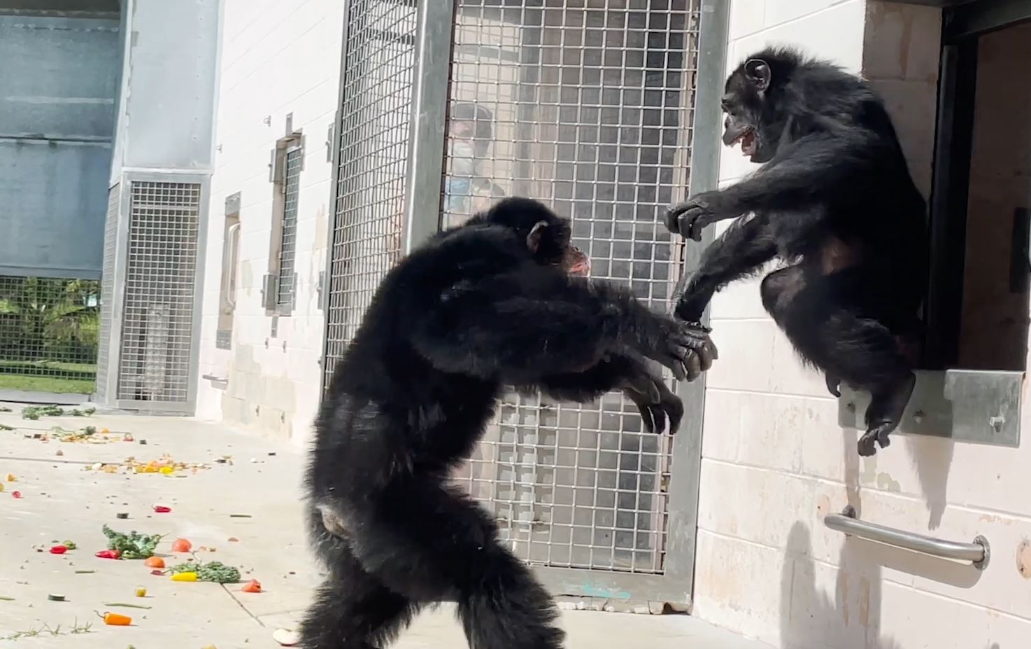 The 28-year-old chimp named Vanilla now lives at a privately funded sanctuary in Fort Pierce after being housed in a California facility where she lived "inside a chain-link fence cage with no grass and very little enrichment," rescue organization Save the Chimps told Storyful.