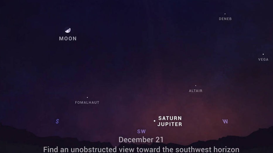 You can see the "Christmas star" on the evening of Dec. 21 on the same day as the winter solstice, which is when one of the Earth's poles has its maximum tilt away from the sun.