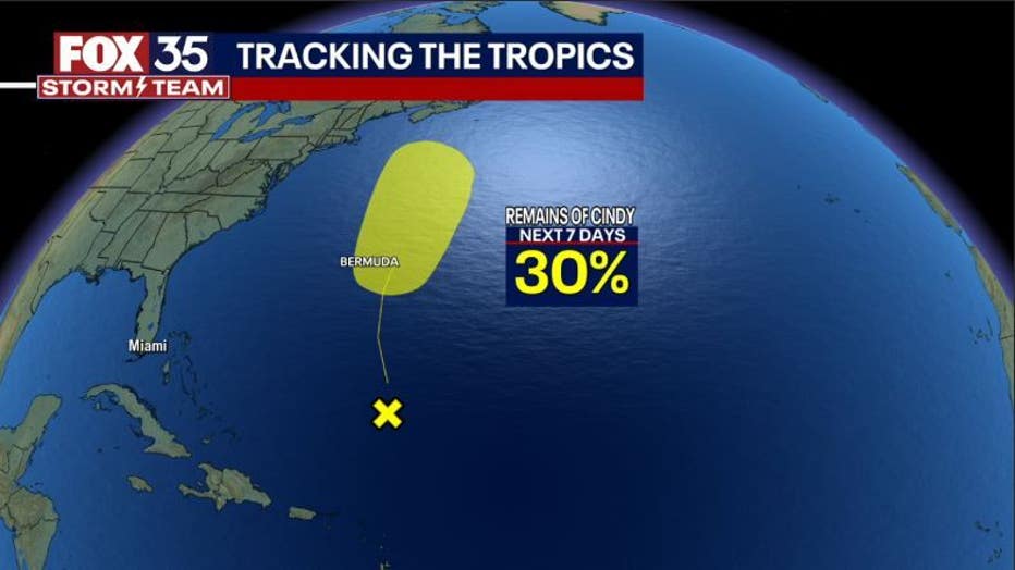 ORLANDO, Fla. - Tropical Storm Cindy has dissipated over the Atlantic Ocean, but the National Hurricane Center (NHC) is watching its remnants for possible redevelopment later this week.