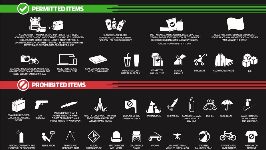 Here's what's allowed and not allowed inside Daytona International Speedway. Click here to view an interactive map.