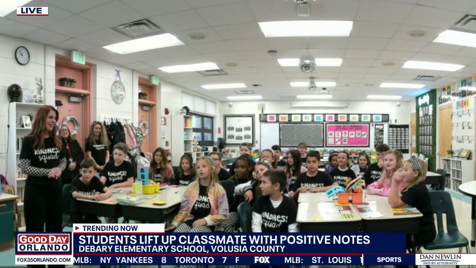 A Debary Elementary school teacher and classroom went viral for the kindness they showed to another classmate. Teacher Joanne Miller leads the Kindness Squad. Recently, her classmates noticed another classmate was feeling down, so they decorated her desk with colorful sticky notes filled with positive messages. "I'm crying and laughing," the student said in the video. "I'm happy." The video was posted and has reached millions.