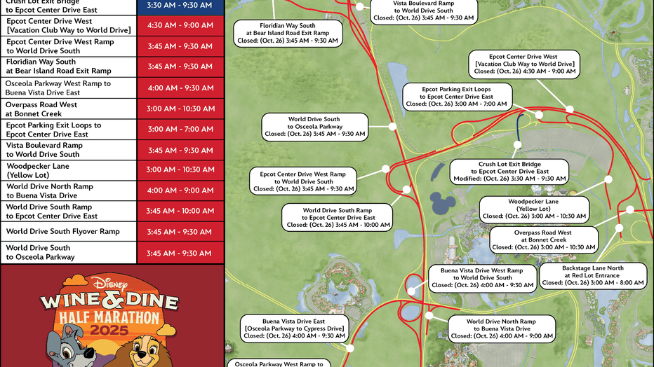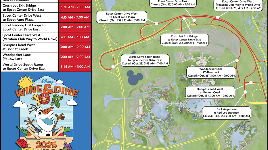 LAKE BUENA VISTA, Fla. - If you are heading to Disney World this weekend, just know it’s going to be a busy one. With the 2025 Disney Wine & Dine Half Marathon Weekend underway, visitors should be aware of road closures.