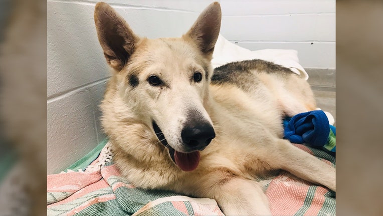 The shelter believes the dog is "definitely" someone's pet based off his mannerisms. They said the pooch appears to be a 5 to 6- year-old white German Shepherd mix.