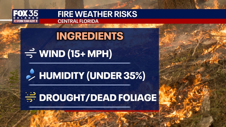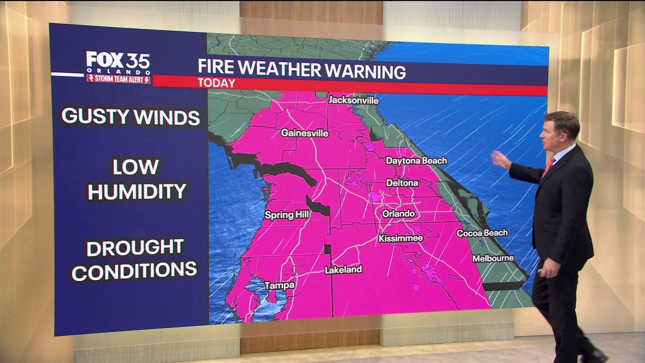 ORLANDO, Fla. - A Fire Weather Warning is in place from 11 a.m.-8 p.m. for Orange, Lake, Sumter, Osceola, Seminole, inland Volusia, and Marion counties.