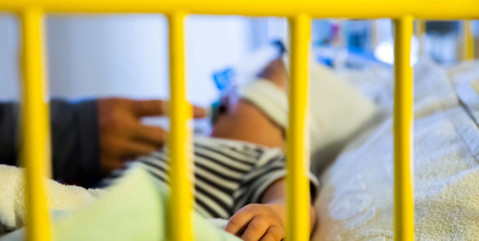 FILE - A father cares for his 8-and-a-half-month-old son, who is in the intensive care unit of the pediatric clinic at a hospital with a respiratory infection. (Photo by Christoph Soeder/picture alliance via Getty Images)