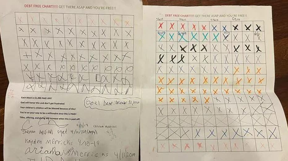 With every $1,000 paid off, the kids filled in a space on their at-home chart.