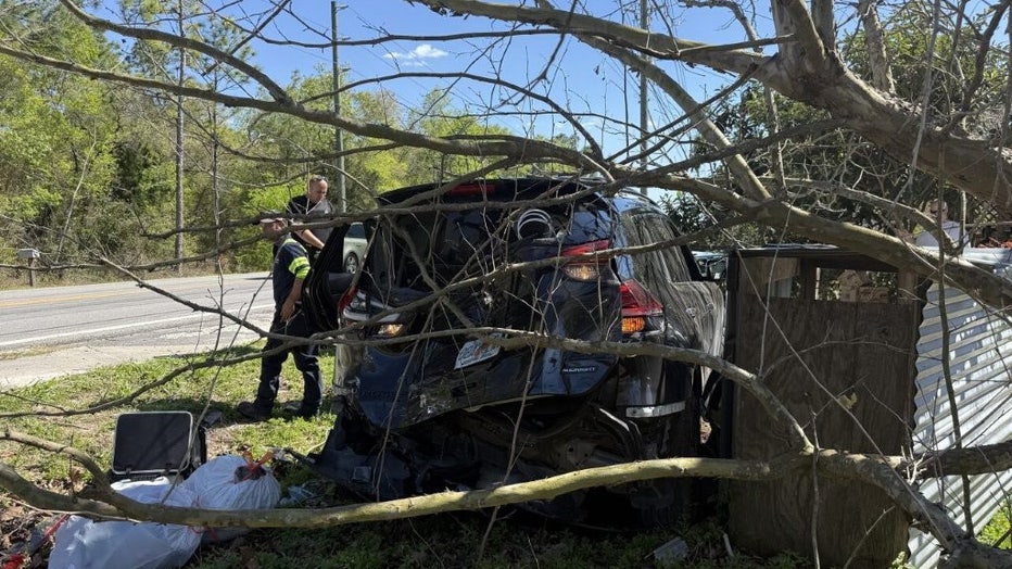 According to the Florida Highway Patrol, the driver lost control of the Ford F-150 and hit a vehicle that had just pulled into a private driveway.