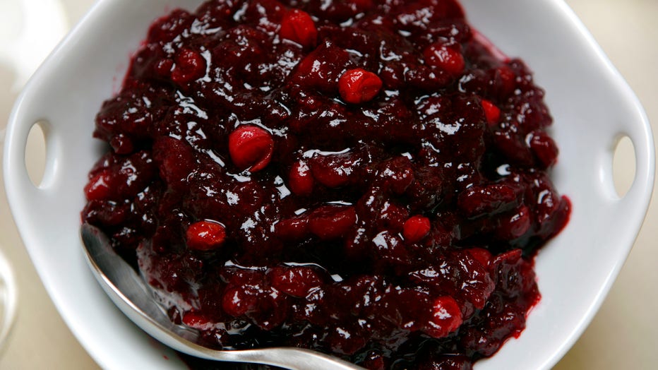 Port wine cranberry sauce is part of the Thanksgiving dinner table for 2007. A feast for thanksgiving dinner, photographed in the LAT studio, Friday, Nov. 2, 2007. (Photo by Jay L. Clendenin/Los Angeles Times via Getty Images)