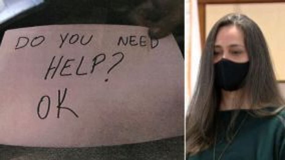 So, she said that "the only thing that I could think to do to not alarm the parents is write something because he was in the position where he could see me and I could see him but the parents couldn't see me."
