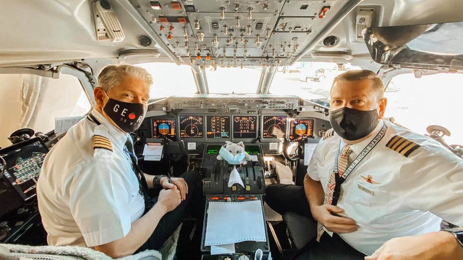 Isabel posed the cat alongside some of her fellow crew members and even put a mask on the doll next to a Purell sanitizer wipe to assure the owner that it was being protected and well taken care of.
