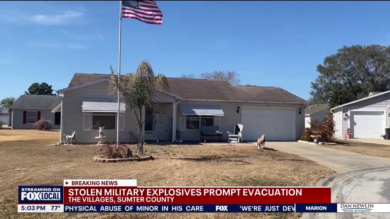 THE VILLAGES, Fla. - Authorities evacuated residents in a neighborhood within The Villages after stolen military explosives were discovered, sparking a federal investigation.