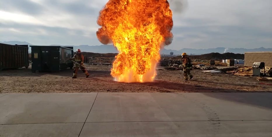 In the video, Phoenix firefighters at the department’s training academy drop a frozen bird into the deep fryer and flames suddenly shoot up into the sky.