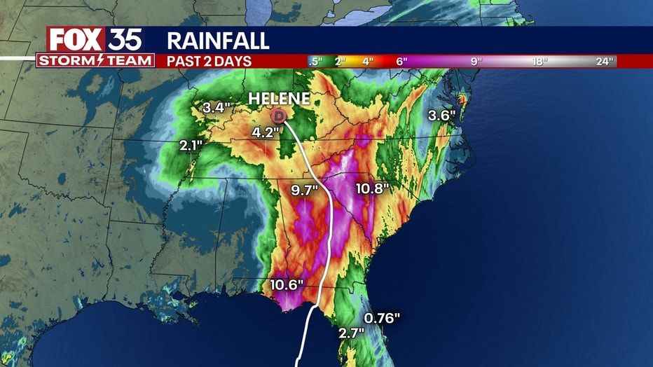 ORLANDO, Fla. - Hurricane Helene unleashed extreme rainfall on the Blue Ridge Mountains of North Carolina and Tennessee, dumping 15–30 inches of rain and causing widespread destruction.