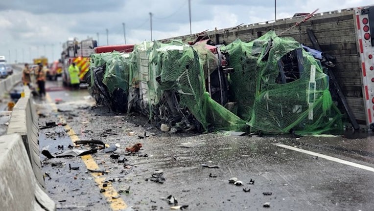 All lanes of I-4 westbound were shut down for about an hour.