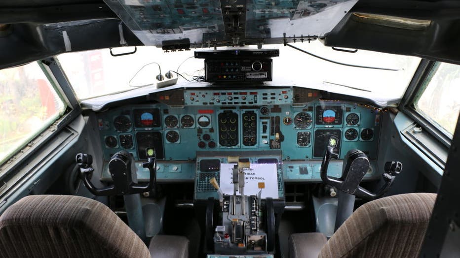 BEKASI, INDONESIA - SEPTEMBER 10: A view of the "Boeing 737" Airplane which was converted into a restaurant on September 10, 2020 in Bekasi, Indonesia. The restaurant made of "Boeing 737" type aircraft, which was once used as a passenger plane within