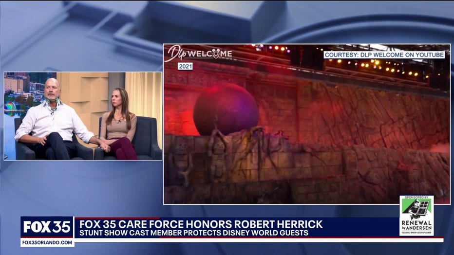 Herrick was injured in December when he positioned his body in front of a 400-pound rubber boulder during a performance at the Indiana Jones Epic Stunt Spectacular! show at Disney's Hollywood Studios to prevent the boulder from going into the audience.