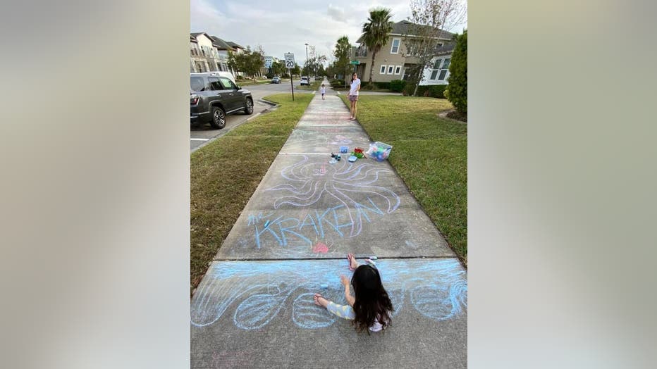 LAKE NONA, Fla. - People in one Lake Nona neighborhood are drawing pictures and writing encouraging messages on the sidewalks to spread positivity during the coronavirus pandemic.