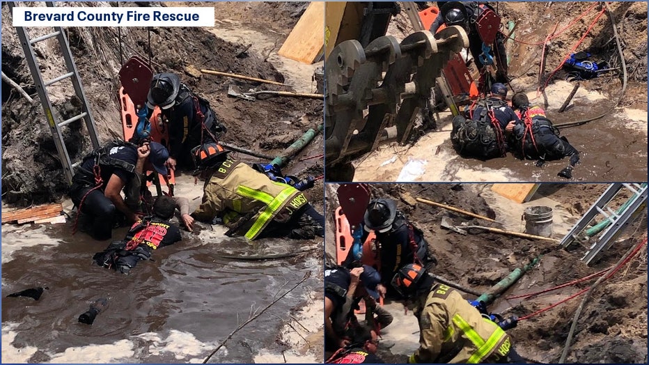 A spokesperson for the Brevard County Sheriff's Office said it took about three hours to rescue the man from the trench because of incoming water and the density of the mud and muck. Getting the rescue equipment to the site was also a challenge.