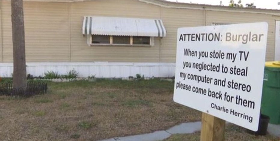 MELBOURNE, Fla. (FOX 35 WOFL) - A Melbourne man has posted a sign outside his home, inviting a burglar who recently stole his TV to come back while he’s home.