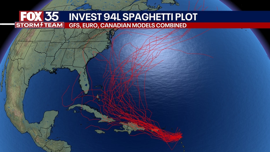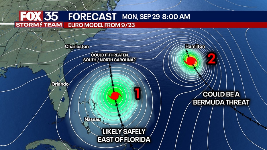 "For Florida specifically though, I think it's very unlikely there are any notable impacts at all other than surf at the beaches. The storm in all likelihood should stay safely offshore. Some outlier models suggest otherwise, but I strongly doubt it and am not worried about them at all for now," said FOX 35 Storm Team Meteorologist Noah Bergren. "In the Carolinas, I'd be watching this forecast much more intently. Or if you have to travel next week to Charleston—Myrtle Beach—Cape Hatteras. Specifics are not known yet, and that hypothetical storm could just as easily scrape the coast there as slam into it next week."
