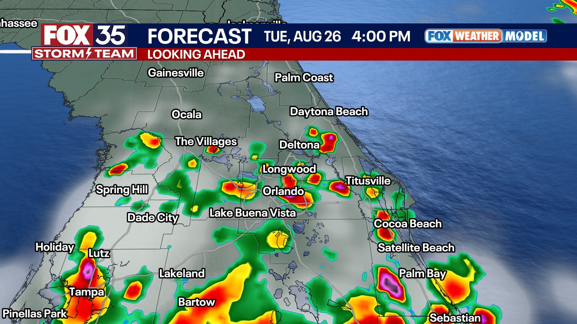 FOX 35 Storm Team Senior Meteorologist Noah Bergren is tracking showers and storms for Tuesday and a quiet week in the tropical Atlantic.