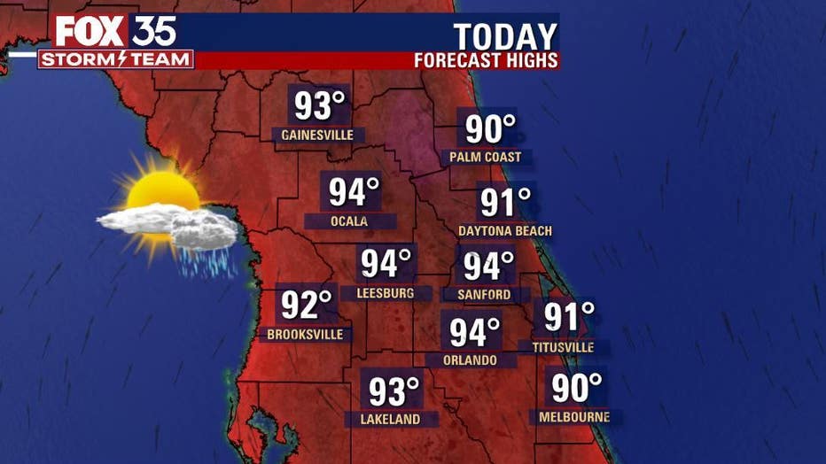 WHAT IS THE WEATHER FORECAST FOR TODAY AROUND ORLANDO?