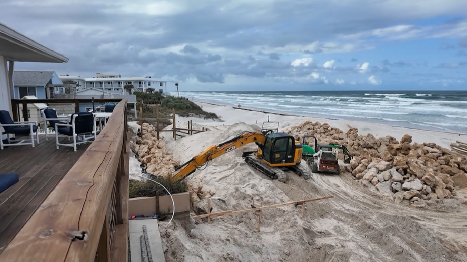 Oceanfront property owners are paying out of pocket to build a coquina rock seawall designed to reduce erosion and restore dunes. The project comes after Hurricanes Ian and Nicole destroyed existing dunes and damaged properties.