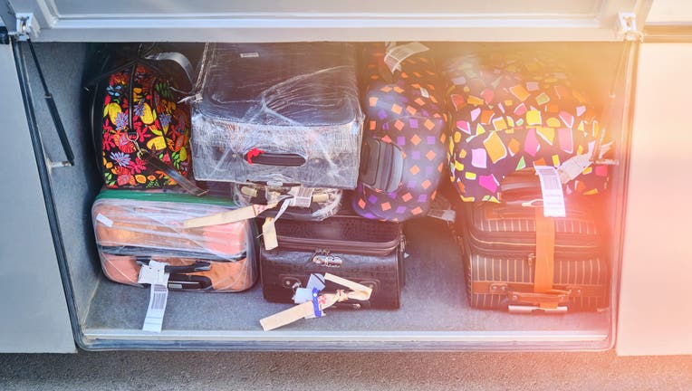 FILE - Generic image of suitcases stacked in the luggage compartment of a bus. Getty Images