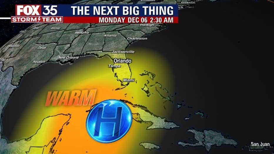 Looking longer term, forecast modeling is hinting at a massive area of higher pressure moving into Florida from the Yucatan Peninsula/Western Caribbean. The high will bring a spell of much warmer weather, holding off any big intrusions of cold air and rainfall. Rising weekend temps will head for the upper 70s on Saturday and right at about 80 by this Sunday.
