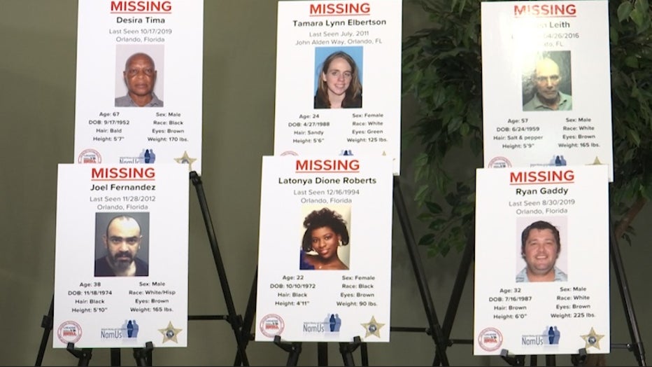 ORLANDO, fla. - Members of six families stood teary-eyed in the Orange County Sheriff’s Office Thursday, hoping their words will help bring closure to a long list of families looking for missing loved ones in the county.