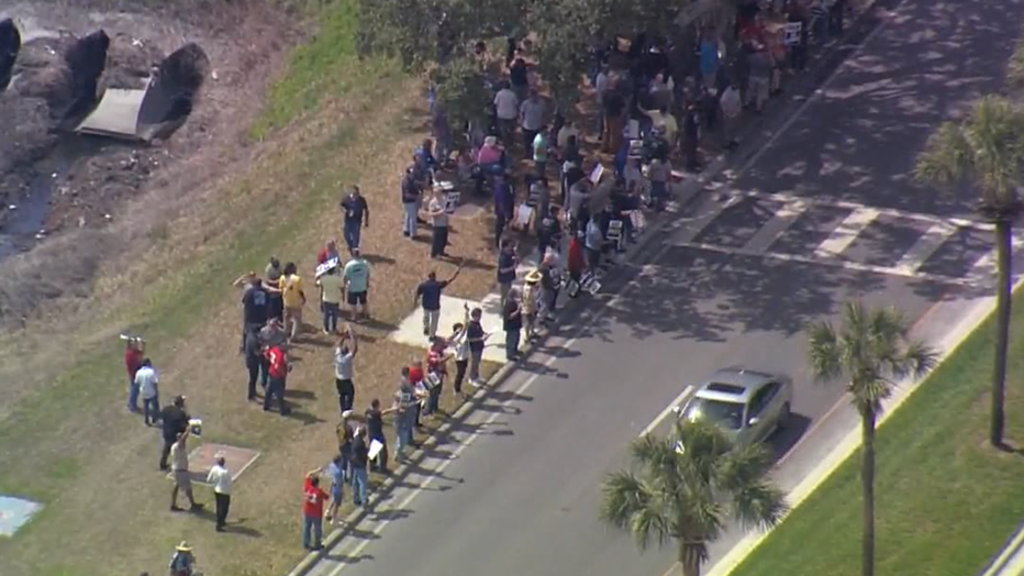 SKYFOX flew over Lockheed Martin's Orlando facility, where several people were on strike outside the facility.