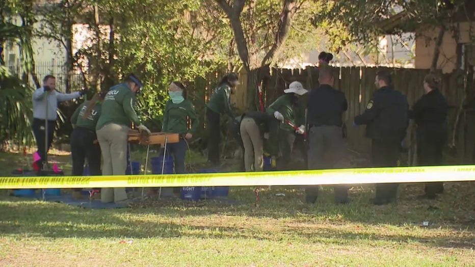 A forensic unit was seen digging into a grass area outside a Parramore home.