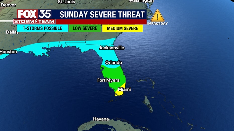 A few storms are possible, but any severe weather will likely remain south of the Orlando region, where it'll be a bit warmer.