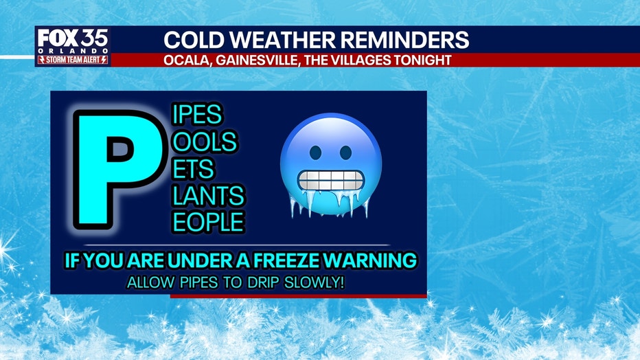 A cold weather advisory has been issued for Orlando and Central Florida for Tuesday morning, between 2 a.m. and 9 a.m. Marion County will be under a freeze warning from 2 a.m. - 8 a.m.