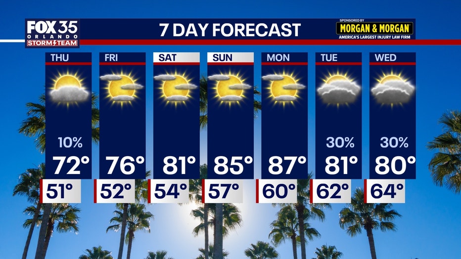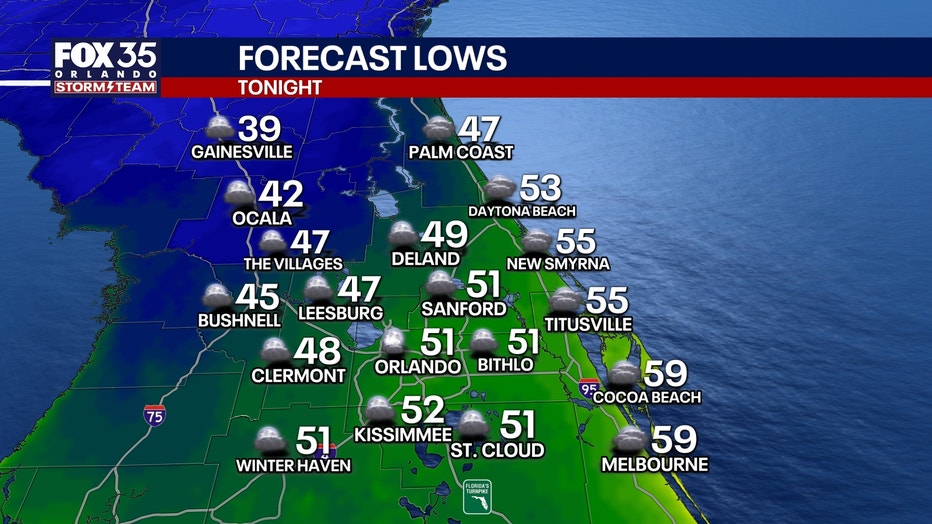 ORLANDO, Fla. - Central Florida will see milder conditions overnight.