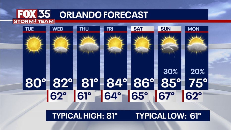 ORLANDO, Fla. - It will be a lovely few days before a weekend warm up on Saturday.