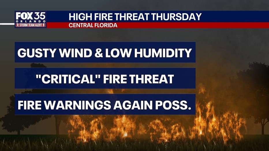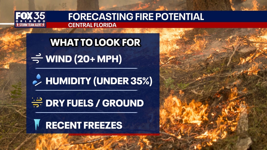 ORLANDO, Fla. - Central Florida will see an elevated wildfire threat this week as dry air and gusty winds move across the state.