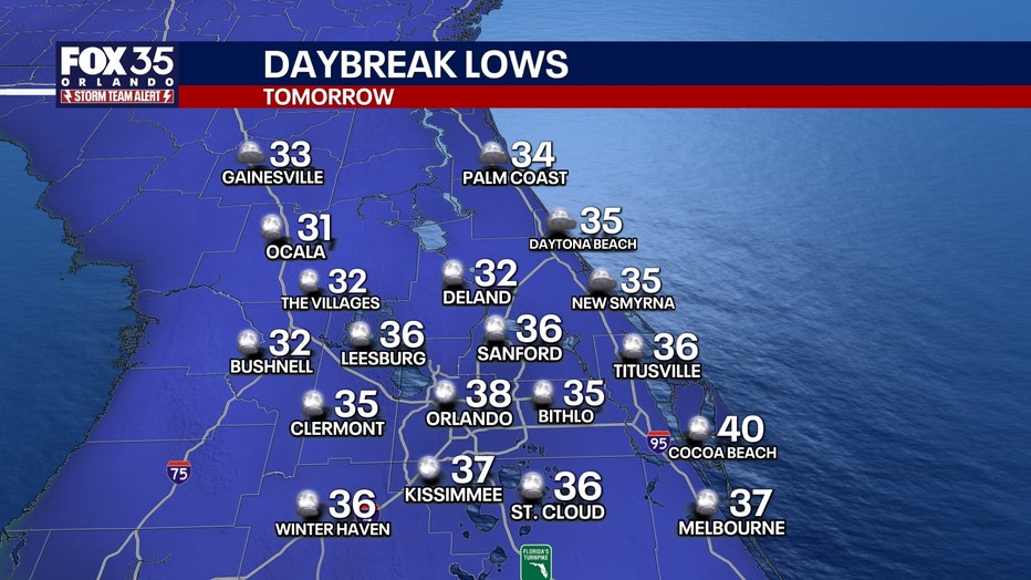 ORLANDO, Fla. - FOX 35 STORM TEAM ALERT: We're waking up to temperatures in the 30s this morning across Central Florida.